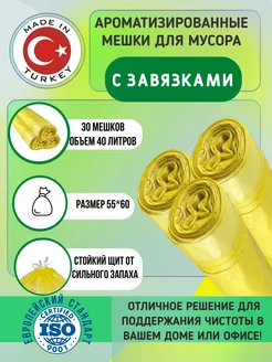 Мешки для мусора с запахом лимона и завязками 40 литров