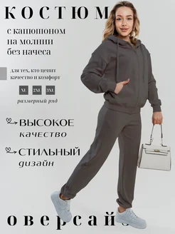 Спортивный осенний костюм на молнии с капюшоном без начеса