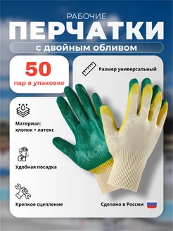 Перчатки рабочие хб двойной облив зеленые 10 пар