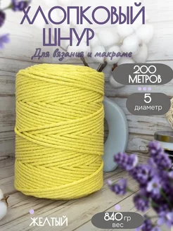 Шнур для вязания хлопковый 5мм 200м