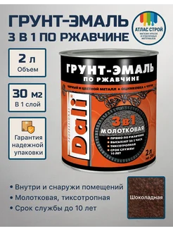 Грунт-эмаль 3в1 молотковая по ржавчине 2 л, шоколадная