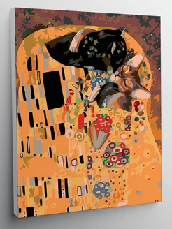 Алмазная мозаика без подрамника Поцелуй Котиков