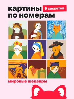 Мини картины по номерам набор 9 в 1, Мировые шедевры коты