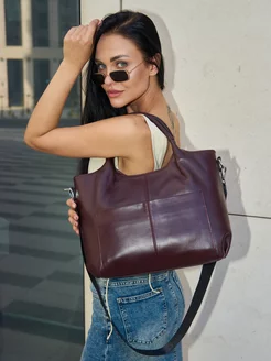 Сумка через плечо большая натуральная кожа
