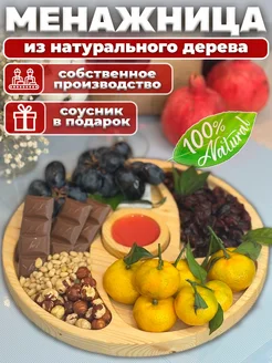 Менажница деревянная круглая 27 см + соусница