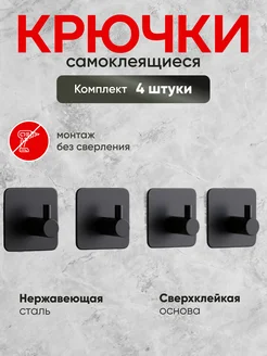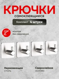 Крючки самоклеющиеся для ванной комнаты и кухни 4 шт