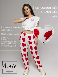 Пижама женская со штанами и майкой топ с сердечками Aqlo