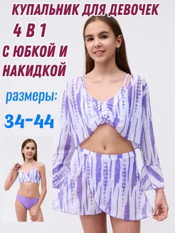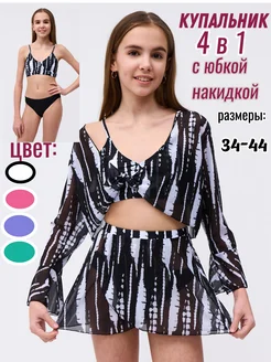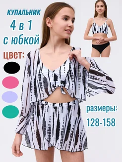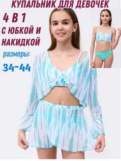 Купальник раздельный для подростка 4 в 1 с юбкой и накидкой
