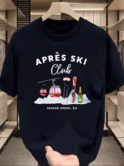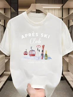 Белая футболка с принтом Апрес Ски Клуб горнолыжный курорт Б