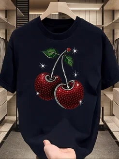 Футболки с принтом вишни блестящие красные