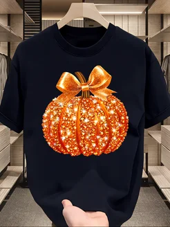 Футболки с принтом тыква блестки оранжевый бант