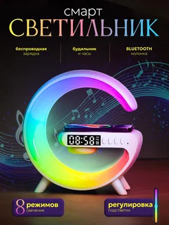 Блютуз колонка ночник с беспроводной зарядкой и подсветкой