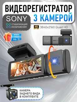 Видеорегистратор для автомобиля 3 в 1 с камерой заднего вида
