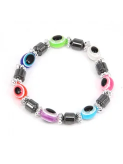 Браслет РАЗНОЦВЕТНЫЙ ГЛАЗ ФАТИМЫ и бочонки ИЗ ГЕМАТИТА