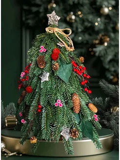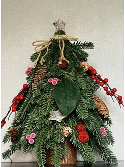 Елка искусственная настольная 50 см + гирлянда, декор