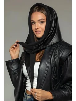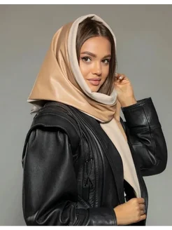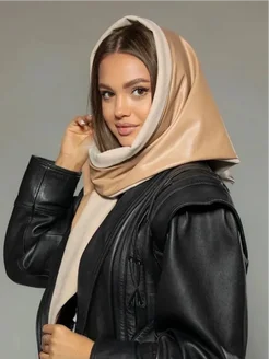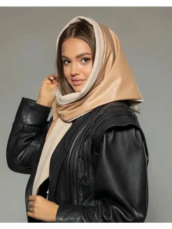 Бежевая повязка на голову кожаная косынка на кнопках зимняя