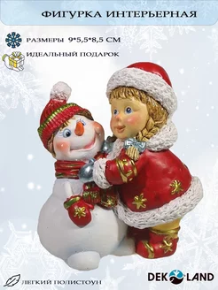 Фигурка новогодняя "Девочка и снеговик"