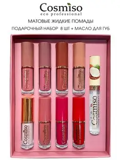 Набор жидких матовых помад и блеска для губ 8+1 шт