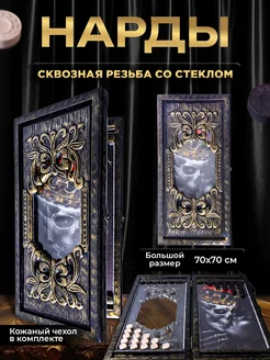 Нарды большие деревянные сквозная резьба со стеклом 70х70 см