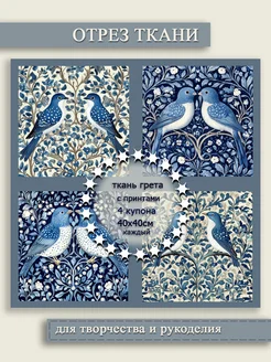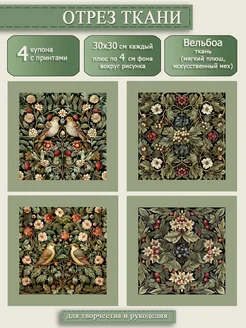 Отрез ткани вельбоа плюш для рукоделия, Птицы, 4 купона