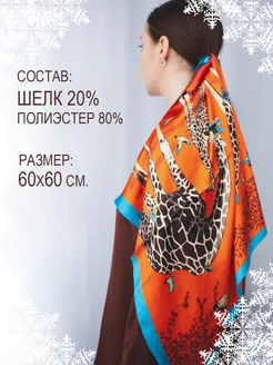 Платок косынка шелковый на шею и голову