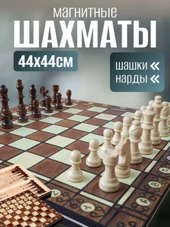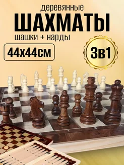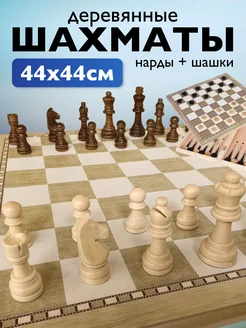 Шахматы, шашки и нарды деревянные 3 в 1, 44 см