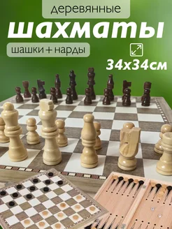 Шахматы шашки и нарды деревянные 3 в 1, 34 см