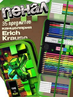 Пенал школьный большой с наполнением с канцелярией minecraft