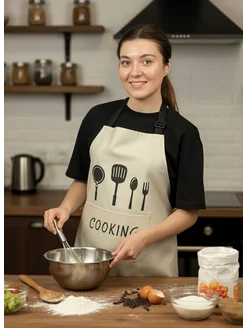 фартук кухонный женский темно-зеленый с махровыми вставками