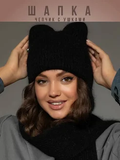 Шапка шарф ушанка капор зимняя ангора теплая