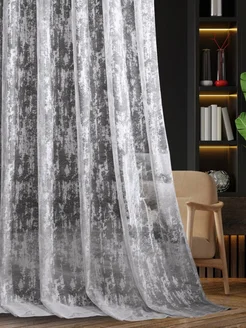 Готовый тюль мрамор 400х240 см на шторной ленте