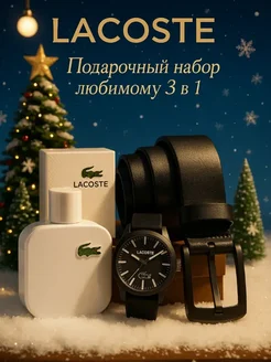 Подарочный набор Lacoste мужчине портмоне ремень и парфюм