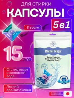 Капсулы для стирки Rachel Magic 5 в 1 15 шт аромат океана