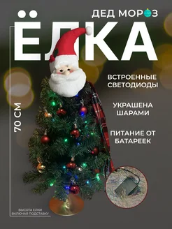 Елка 70 см. светодиодная с гирляндой и игрушками для ленивых