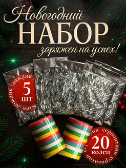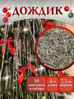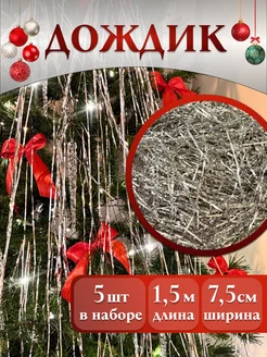 Дождик на елку новогодний серебряный 5шт 1 5м
