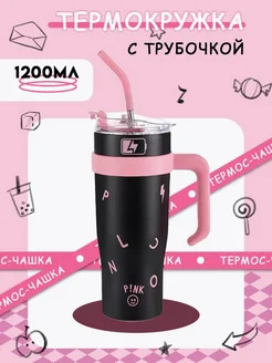 Чёрная термокружка с трубочкой 1200МЛ