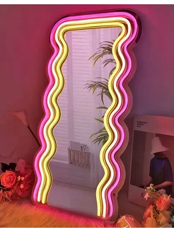 цветное неоновое зеркало с большой волной
