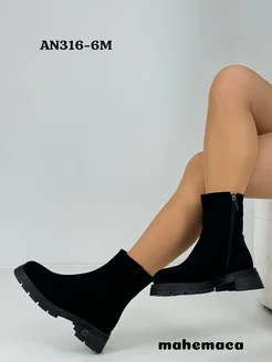 Демисезонные сапоги трубы с квадратным мысом на каблуке