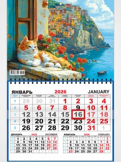 Настенный квартальный календарь 2026 Кот 46х29см