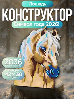 Новогодний конструктор Символ года 2026 Лошадь из миниблоков