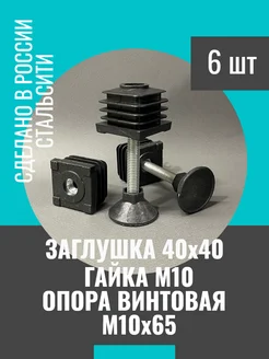 Заглушка 40х40 с гайкой и винтовой опорой М10х65 -6 шт