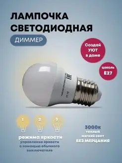 Светодиодная лампа е27 диммер LED 3 режима света 6Вт