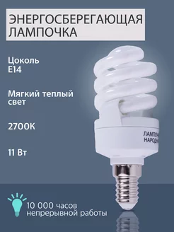 Лампочка е14 энергосберегающая 11Вт люминесцентная 2700К 1шт