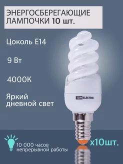Лампочка е14 энергосберегающая 9Вт люминесцентная 4000К 10шт