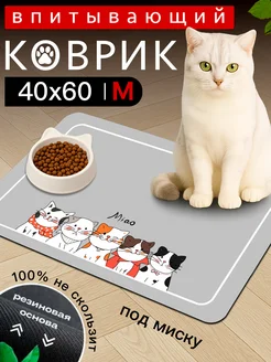 Коврик под миску и лоток для животных впитывающий 40x60 см