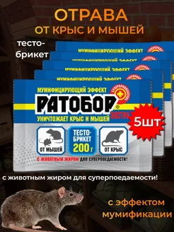 Отрава от мышей РАТОБОР тесто с животным жиром 200гр, 5шт