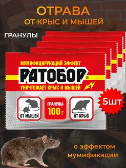 Отрава от мышей и крыс РАТОБОР зерно 100гр, 5шт