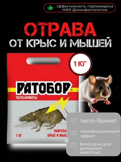Отрава от мышей и крыс Ратобор тесто-брикет 1кг, 1шт