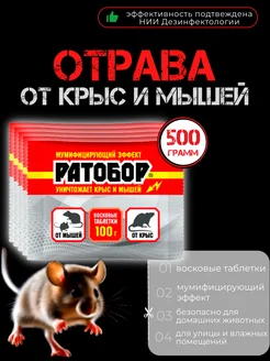 Восковые таблетки от крыс и мышей "Ратобор" 100гр, 5шт