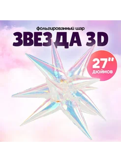 1шт, Шар фольгированный 27" "Звезда 3D", цвет прозрачный